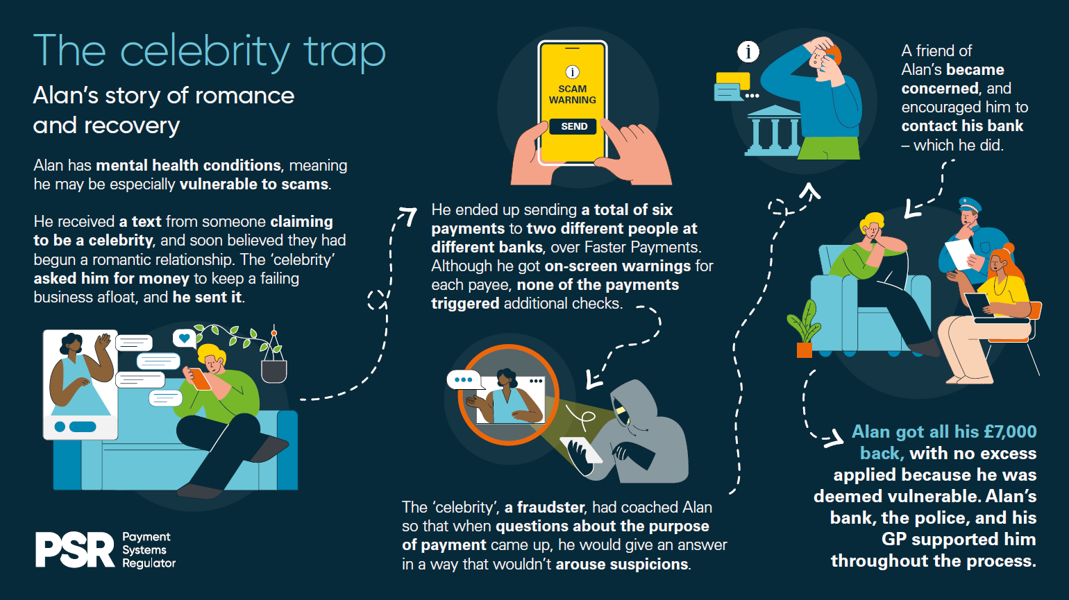 Behind every scam is a real person. The PSR has included some victim stories to highlight the various types of fraud via Faster Payments and what is in scope of our reimbursement policy. To keep victims anonymous, we have changed all identifiable characteristics in these case studies.